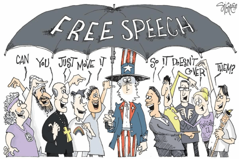 Því miður er það pólitískur veruleiki á Vesturlöndum í dag að hugtakinu „tjáningarfrelsi“ er oftast veifað bæði af ysta hægri og ysta vinstri eftir eigin hentugleika en ekki hugsjón. Margir sömu hægrimenn og bentu réttilega á hættulega slaufunarmenningu síðustu ára virðast ekki kippa sér upp við að æðstu ráðamenn í Bandaríkjunum heimti að slökkt sé á grínistum sem strjúka forsetanum öfugt. Á ysta vinstrinu hefur verið hlakkað yfir örlögum þeirra sem orðið hefur fótaskortur á tungunni og hlotið fyrir það útskúfun eða starfsmissi.